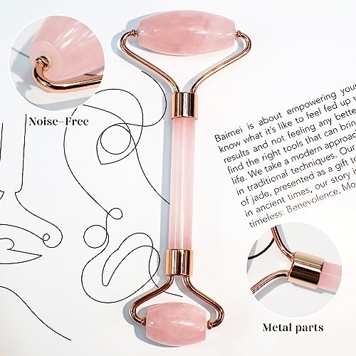 BAIMEI Jade Roller & Gua Sha, Face Roller, Facial Beauty Roller Skin Care Tools, Self Care Gift for Men Women, Massager for Face, Eyes, Neck, Relieve Fine Lines and Wrinkles – Rose Quartz