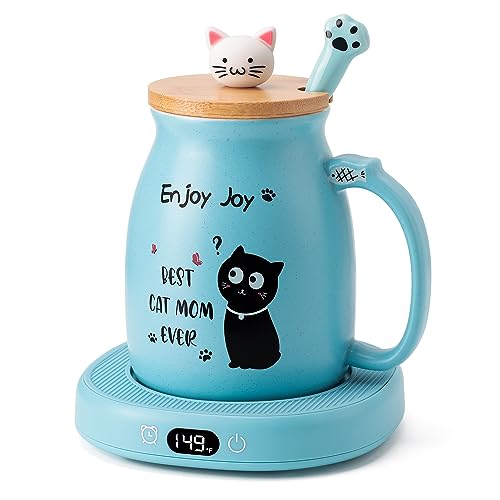 Bsigo Coffee Mug Warmer & Best CAT MOM Ever Mug Set, Tea Cup Warmer for Desk Candle Melter Wamer Beverage Coffee Warmer with 3 Temp Settings, 8H Auto Shut Off, Mom Mother Birthday Womens Mothers Day