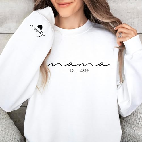 Specification: Custom Mama Sweatshirt with Kid Names on Sleeve Personalized Mom Sweatshirt for Women for Mom Sweater Est 2025 Multicolor