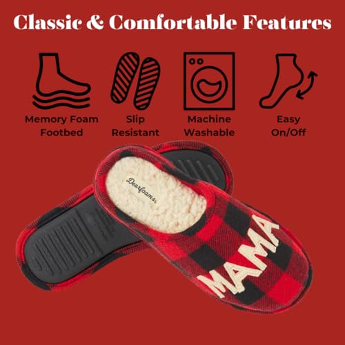 Made with mama bears in mind, these charming slippers are a must for those cozy nights in with the whole family! Classic plaid patterning and felt applique combine for an eye-catching touch, while supersoft memory foam insoles offer cloudlike support throughout the day.