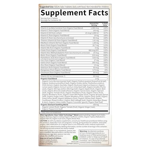 CLEAN TABLET TECHNOLOGY: Our innovative process uses 100 percent whole food plant material to make tablets that are easy to digest and dissolve in 45 minutes, ensuring high bioavailability and comfortable digestion—free of synthetic binders and fillers