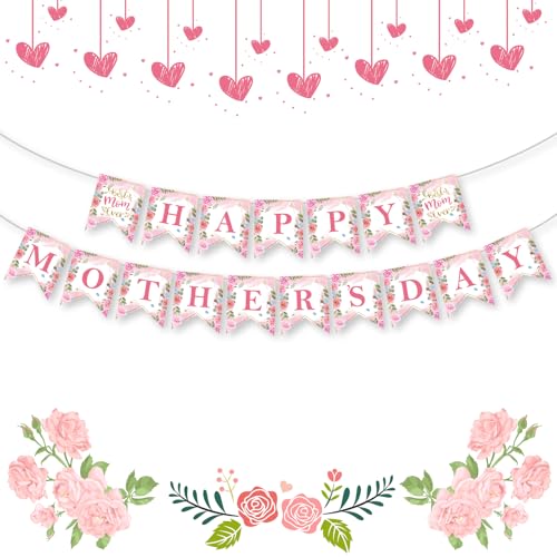 Specification: Happy Mothers Day Banner – Pink Mother’s Day Decorations Banners, 2025 Best Mom Ever Sign Bunting Banner Garland for Mothers Days Home, Office, Fireplace, Wall Party Decor Supplies Favors Props