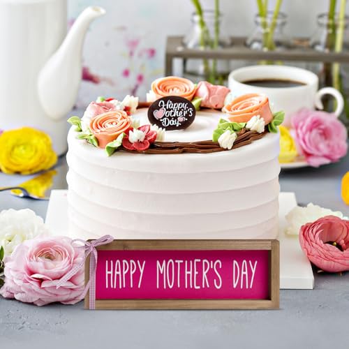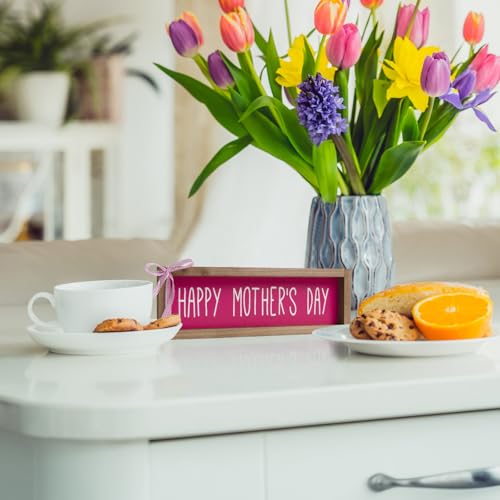flangairy Happy Mothers Day Sign Decor, Wooden Mom Decorative Signage Plaque, Indoor Table Office Desk Mantle Rustic Decorations For Home