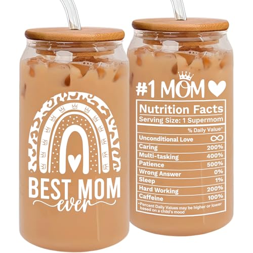 MOTHERS DAY GIFTS FOR MOM/WIFE – This 16oz can glass cup is more than just drinkware—it’s a daily reminder of how much Mom is loved and cherished. With its stylish “Best Mom Ever” design and elegant leopard rainbow boho print, it adds warmth to her day. But it’s not just beautiful—it’s meaningful! The “#1 Mom” Nutrition Facts on the back celebrate her superpowers: 100% Love, Strength, and Endless Patience—a perfect way to show appreciation with every sip!