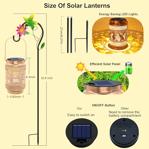 Specification: Hummingbird Solar Lanterns Outdoor Waterproof with Shepherd Hook, Birthday Gifts for Christmas Women Mom Grandma, Metal Solar Hanging Lights Garden Decor for Outside Yard Patio Pathway Porch