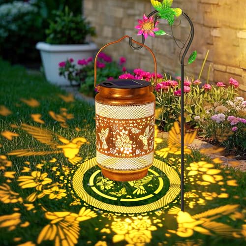 Hummingbird Solar Lanterns Outdoor Waterproof with Shepherd Hook, Birthday Gifts for Christmas Women Mom Grandma, Metal Solar Hanging Lights Garden Decor for Outside Yard Patio Pathway Porch