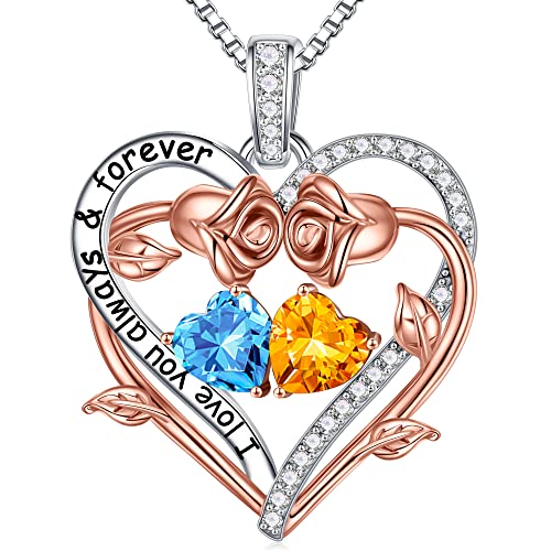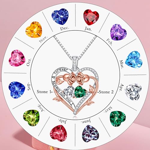 Specification: Iefil Rose Heart Double Birthstone Necklace Gifts for Wife Her Mom Women, Birthstone Jewelry Gemstone Birthday Gifts for Girlfriend Grandma Her Wife Women