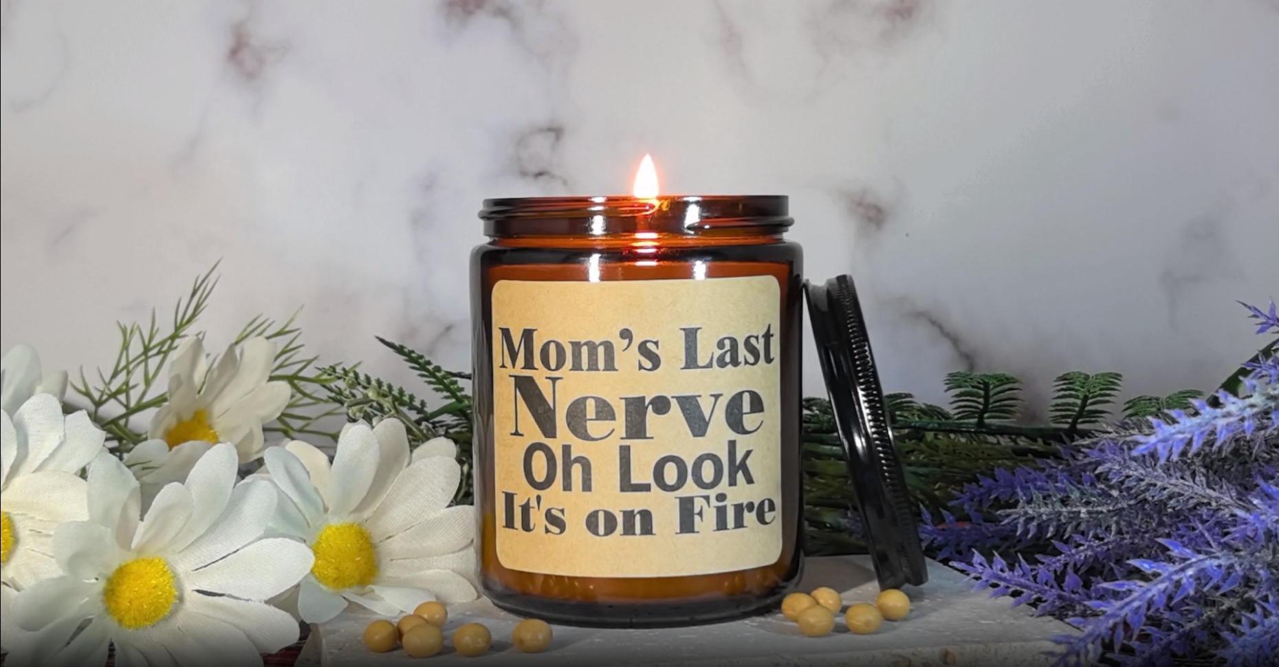 Birthday Gifts for MOM – This funny scented jar candle for mother, Evokes some laughter with a funny logo “ Mom’s Last Nerve Oh Look. It’s on Fire.” It is a great and funny gifts idea for mom, the friend who becomes a new mom, first-time mom, pregnant mom, stepmother, foster mom, mother in law, grandma. This candle gift can fully express your love for your mother! Mothers day gifts for mom. Christmas gifts for mom.