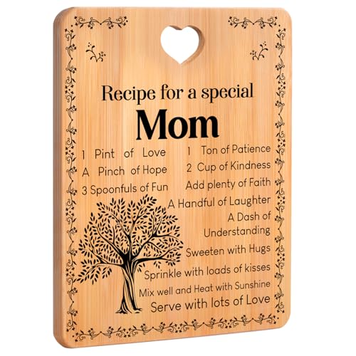 Gifts for Mom – ‘Recipe for a Special Mom’ – Presents for Mom, Perfect Mother’s Day, Birthday, Thanksgiving, Christmas Gift for Mom – Bamboo Cutting Board.