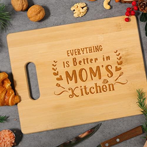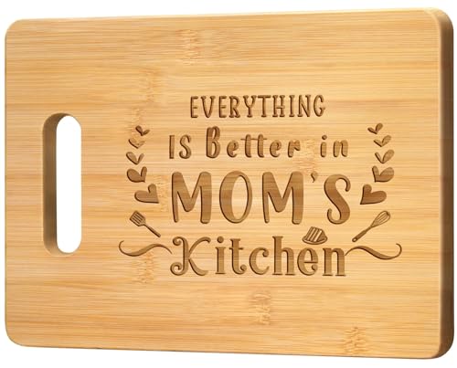Forever Love for Mom – Our bamboo cutting board are carefully engraved with “Everything Is Better in Mom’s Kitchen” to remind her that even if you don’t tell her, you will always and forever thank her and love her. Show her how much she means to you.Hand-carved with care,the warm message will never fade, preserving your precious memories forever
