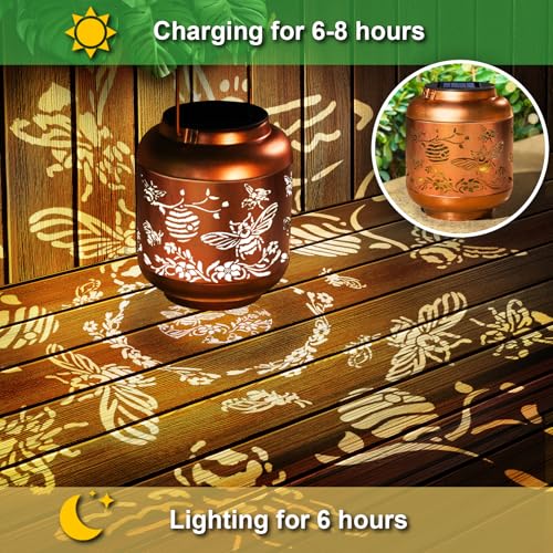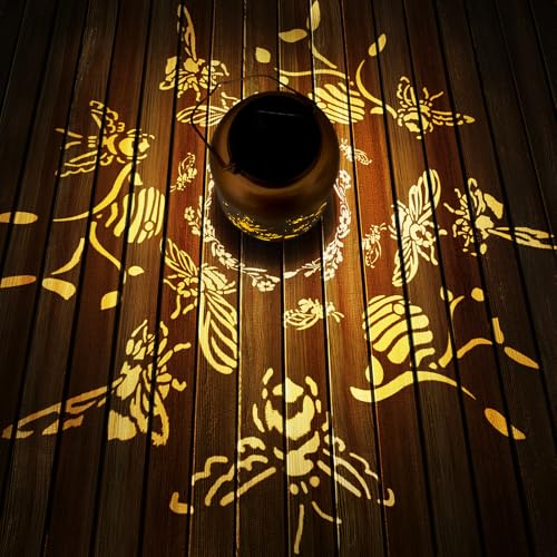 Mothers Day Gifts for Women: The retro appearance, with gold copper color and hollow out metal veneer, the solar lantern casts bright and warm light in darkness, accompanied by gorgeous and graceful bee patterns
