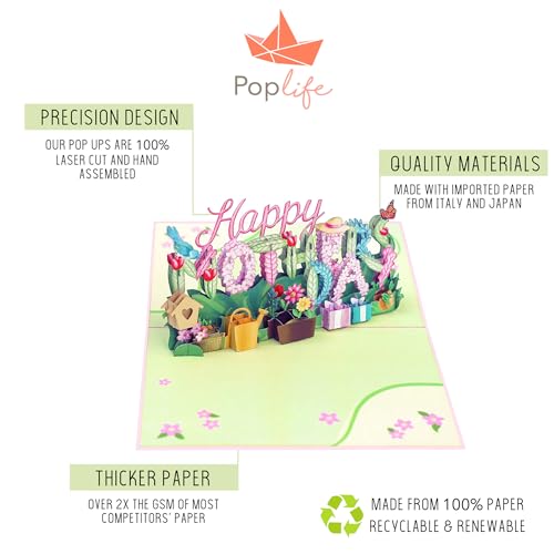 PopLife® Happy Mother’s Day 3D Pop Up Card – Spring Gardening, Flower Theme Gift – for Mom, Wife, Sister, Grandma, Step-mom, Mother-In-Law