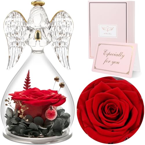 Specification: Sunia Preserved Flower Rose Gift for Women – Mother’s Day Birthday Gifts for Mom Wife Grandma, Glass Angel Figurines Forever Real Roses Gifts for Her Valentine Day Thanksgiving (Red)